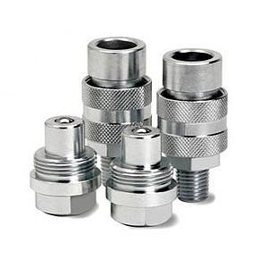 БРС этой конструкции широко используются в системах мобильного гидравлического инструмента. Замыкание полумуфт обеспечивается резьбовым соединением, что обеспечивает работоспособность при высоких давлениях, допускает импульсные гидравлические нагрузки и гидравлические удары. При размыкании допускается наличие остаточного давления в гидросистеме.